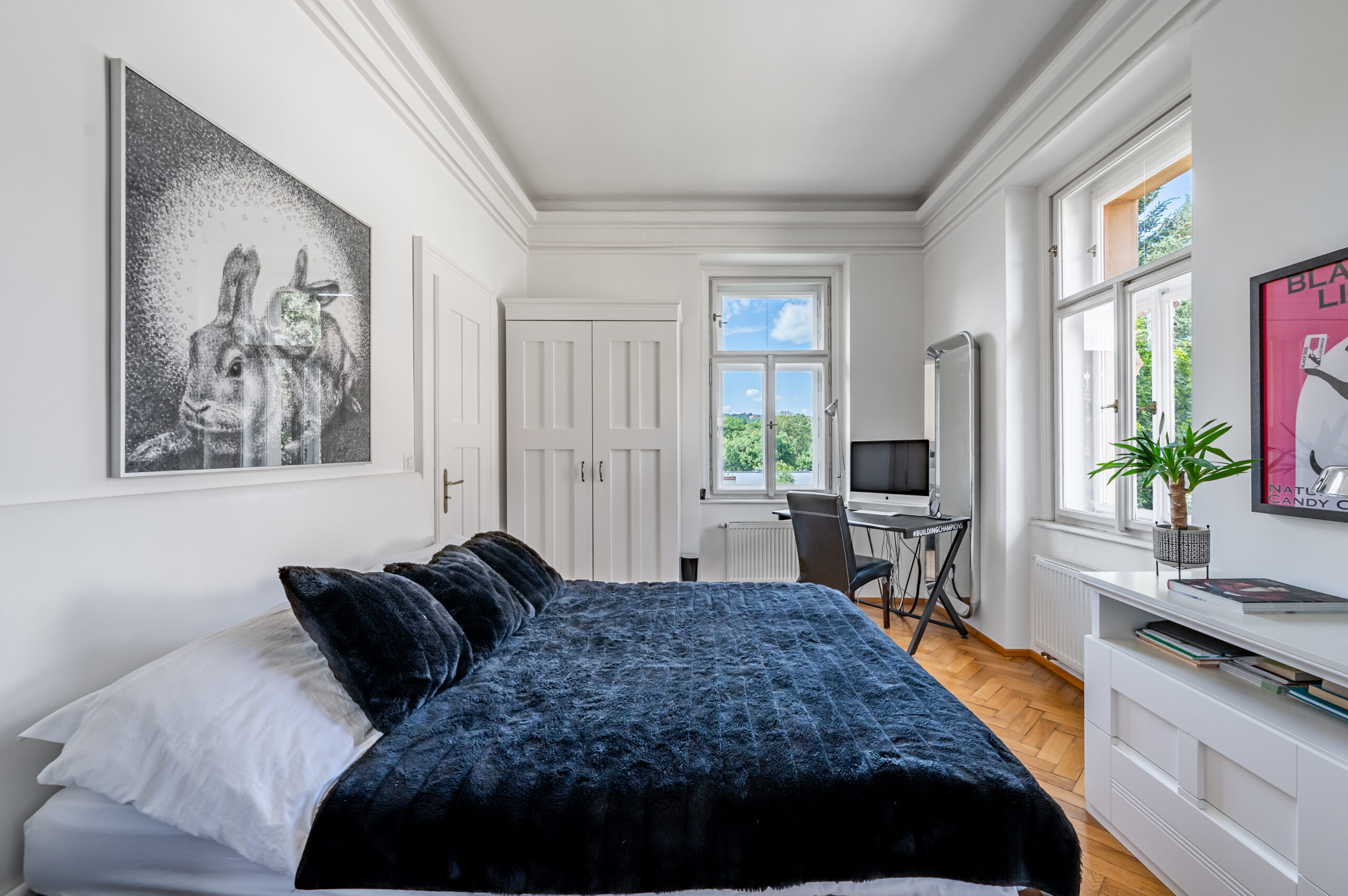 From its elevated position in the prestigious Malvazinky district, Vila Helenka offers breathtaking panoramic views over the rooftops of Prague. Whether enjoyed from the upper-floor windows, the tower’s round openings, or the private sunlit terrace, the vistas stretch across the historic skyline and surrounding greenery. The ever-changing light throughout the day adds a dynamic and poetic quality to the scenery, making every glance a reminder of the villa’s exceptional location.